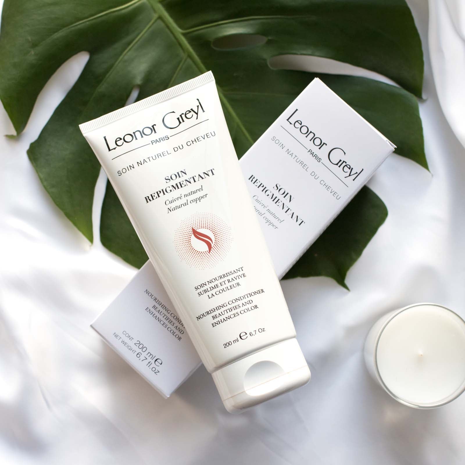صُنع علاج إعادة التصبغ Soin Repigmentant من المكونات الطبيعية بنسبة 96%، وهو بلسم مغذي بأصباغ تلوين ترضي كل درجة من درجات الشعر. تركيبة خالية من المواد الحافظة وغير مهيجة تعتمد على زيت المروج وبروتينات الأرز وزيت باباسو لتغذية الشعر مع إضافة خصلات خفية.